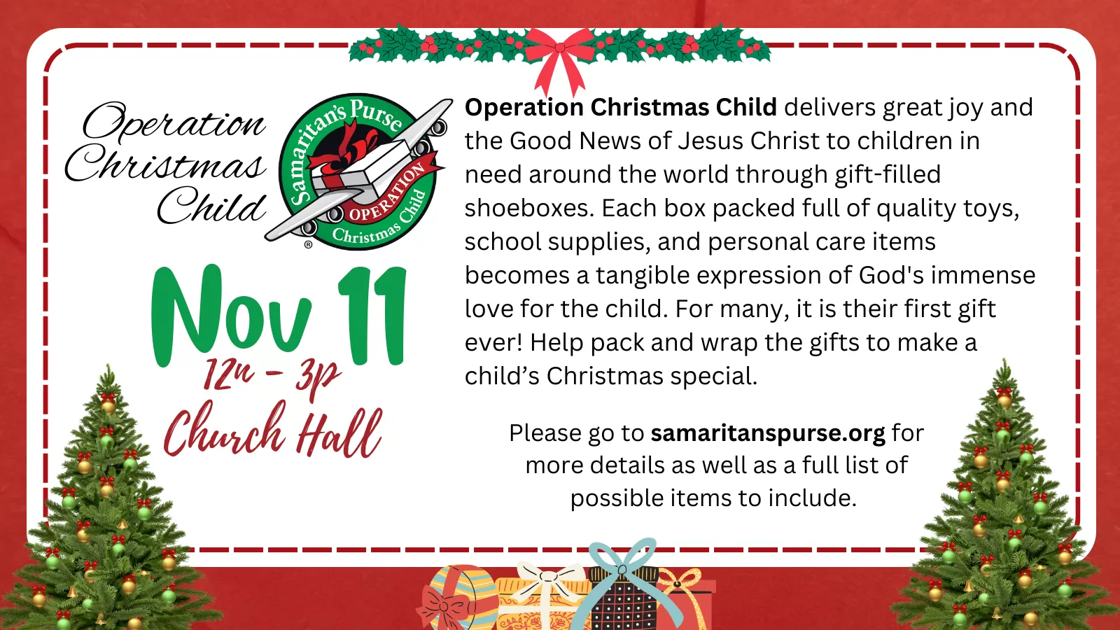 Saturday, November 22 - December 14 - Giving Tree (Gathering Space)